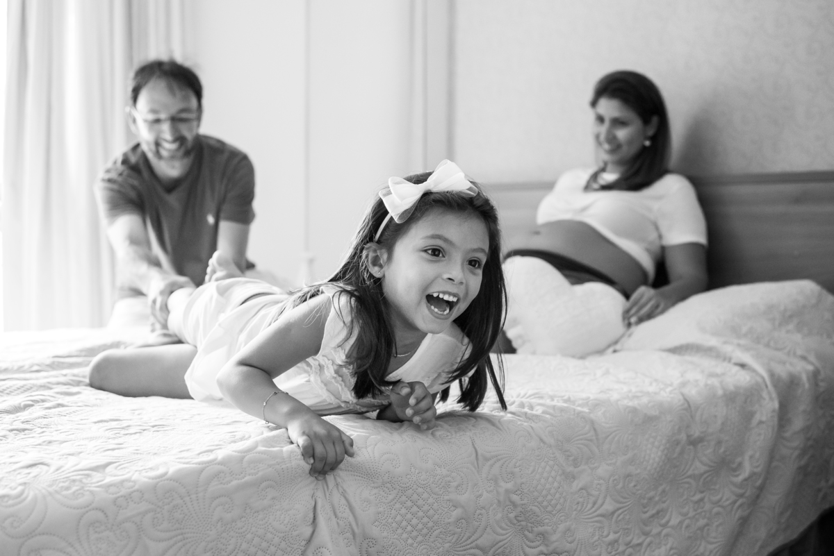 Mais uma vez tive o prazer de passar uma tarde fotografando essa família. Fotografar uma amiga (Já conheço a mamãe Fernanda há mais de 10 anos), brincar com a Bruna, bater papo com o Gustavo e ainda registrar a "barriga" da Marina. Tudo com aquela Luz entra pelas cortinas, aquele aconchego que só se tem na casa, no ninho da Família...foi muito legal!! Por falar na Bruna... mais uma vez ela roubou a cena. Demais!!! Moleca, doce, espoleta... e como gosta de pular (rsss)!!! Uma criança como as crianças devem ser!!! Vai ser uma super amiga para irmã (essa dupla vai dar o que falar!!). Parabéns a essa família querida, por todo esse universo, que está prontinho para a chegada da Marina...espero que ela possa sentir isso no futuro através dessas fotos!!!
